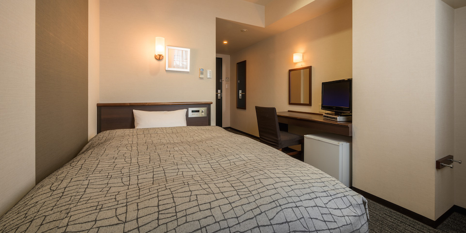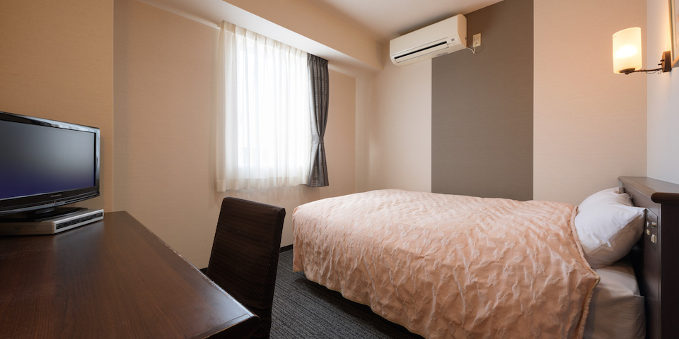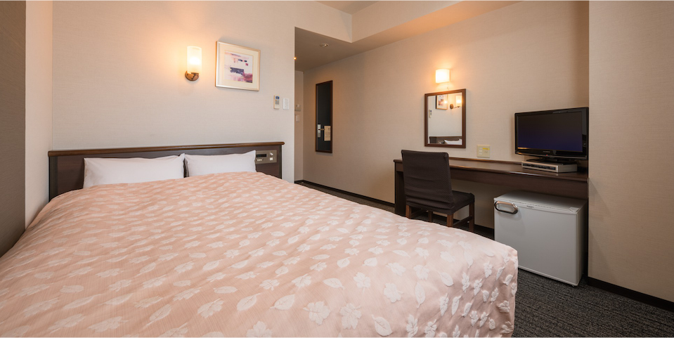 2008年4月リニューアルオープンの新館・ダブルベッドのお部屋です。Wi-Fi(無線LAN)完備。有線LANによるインターネット接続も可能です。全室液晶TV、バス・ウォシュレットトイレ付き。カップルでのご旅行にぴったりです。