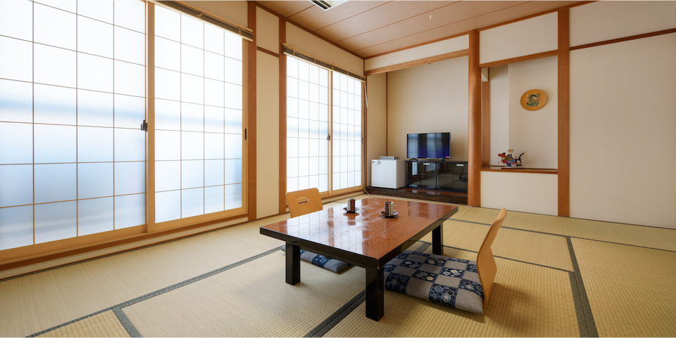 バス・トイレ付き和室10畳タイプ。旅館のお部屋感覚でおくつろぎいただけます。